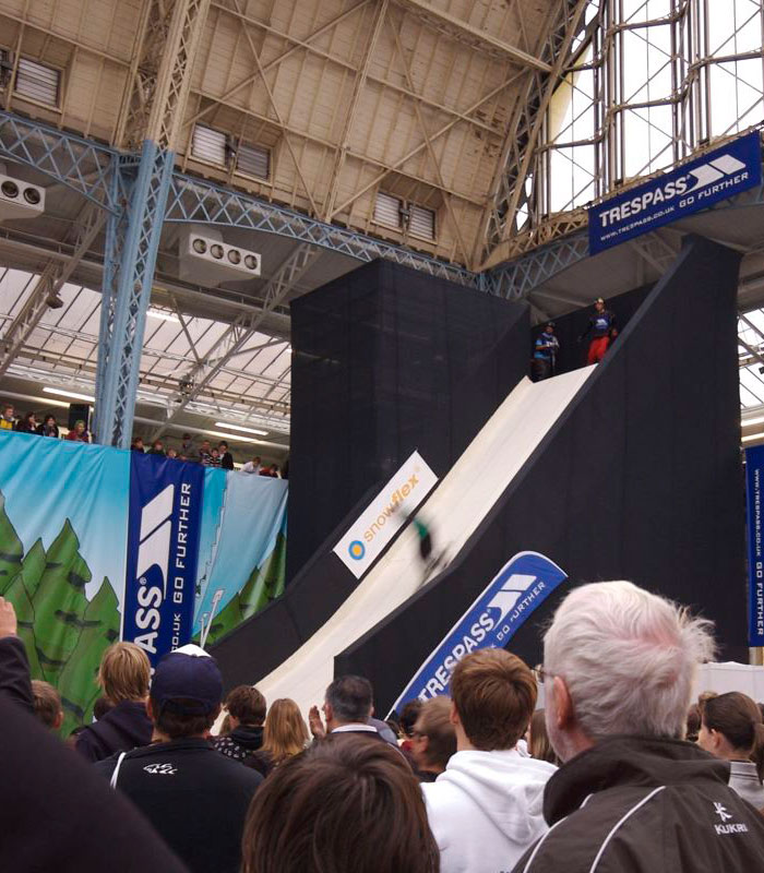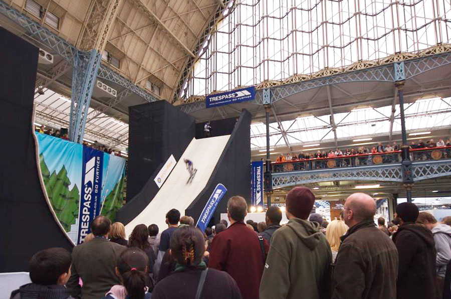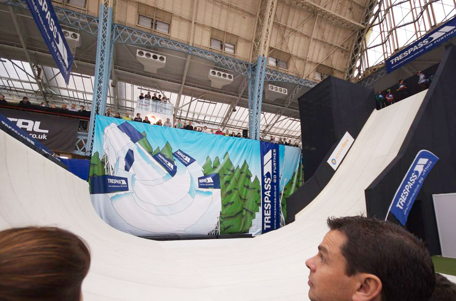 A real snow quarter pipe at the Olympia National Hall.